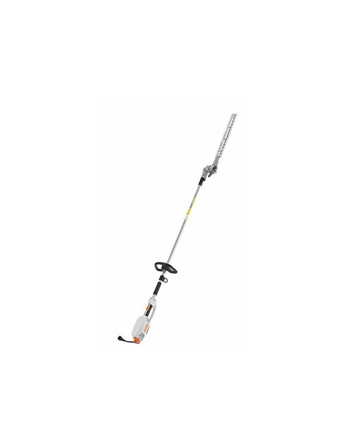 Le taille haies sur perche HLE71 permet de tailler sans difficultés et en toute sécurité depuis le sol des haies très hautes ou particulièrement larges. La possibilité de pouvoir orienter l'outil de coupe sur 125° en fait un outil à usage très polyvalent. Vous avez ainsi facilement accès en toute sécurité au sommet de la haie, tout en économisant du temps et des efforts.