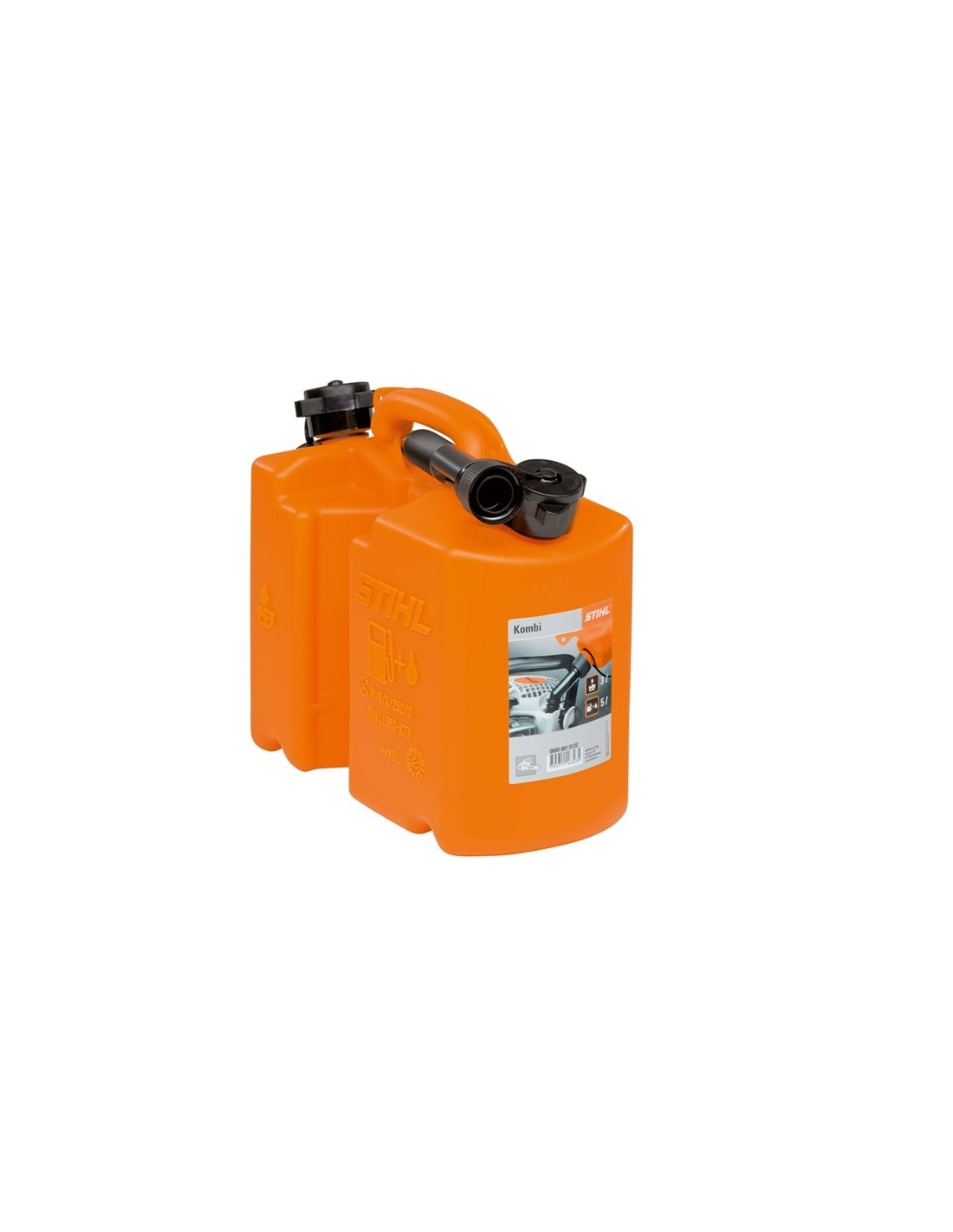 Carburants, huiles et accessoires Bidon combiné transparent STIHL + x2 becs verseurs STIHL 70142000234 Bidon combiné pour 5 litres de carburant et 3 litres d'huile de chaîne adhésive. Homologation UN. Voir