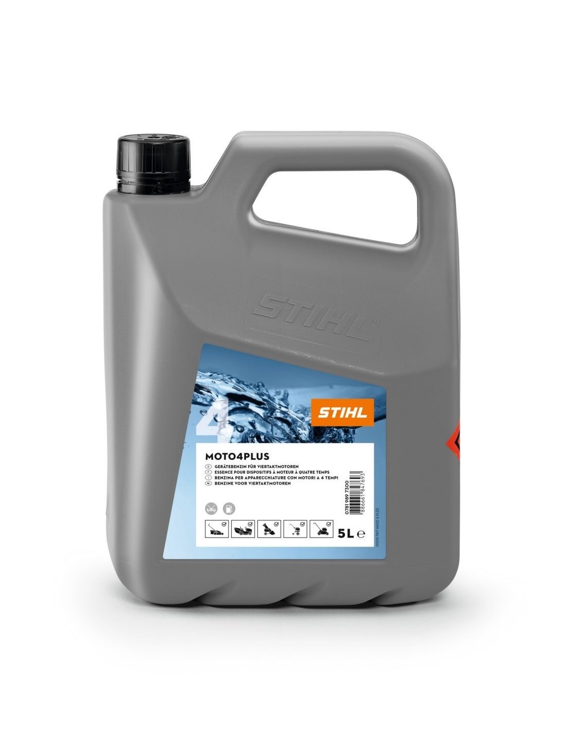 Grâce à sa formule unique « Made by STIHL » développée avec moins de substances nocives et polluantes, le Moto4Plus augmente les performances et la longévité du moteur et assure un démarrage facile même après un remisage hivernal ou une longue période d’inutilisation. Pratique, le carburant Moto4Plus garantit un mélange stable pendant 5 ans.