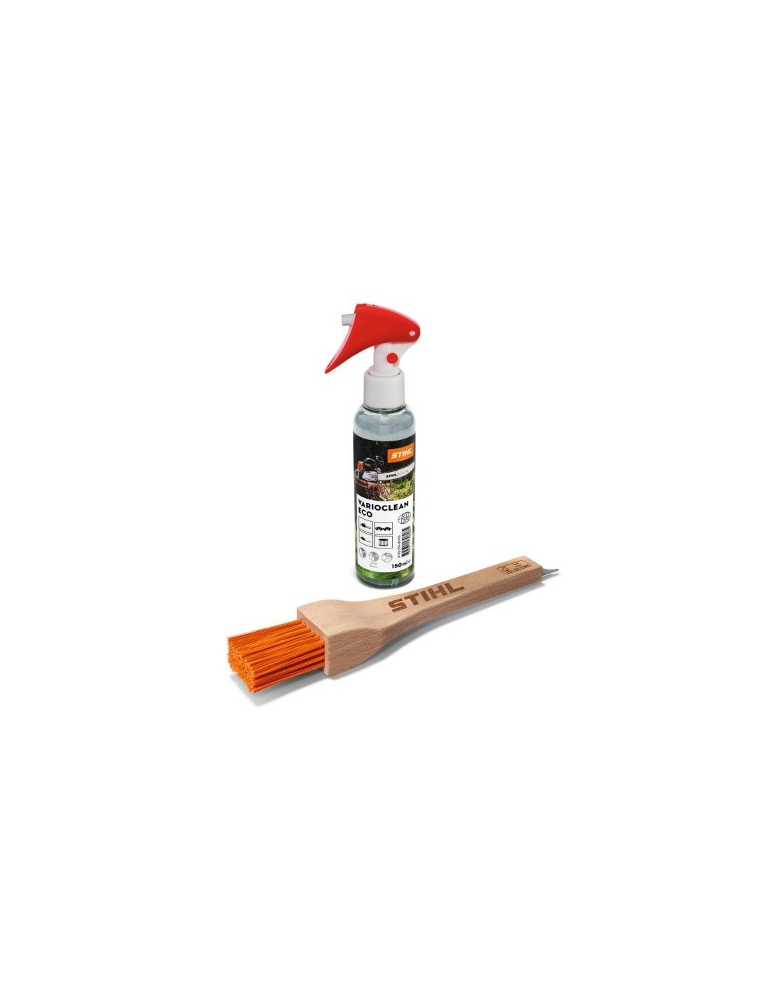Le Care & Clean Kit MS contient les essentiels pour le nettoyage et l‘entretien de l’outil de coupe, du filtre à air HD2 et du carter moteur de votre tronçonneuse STIHL :