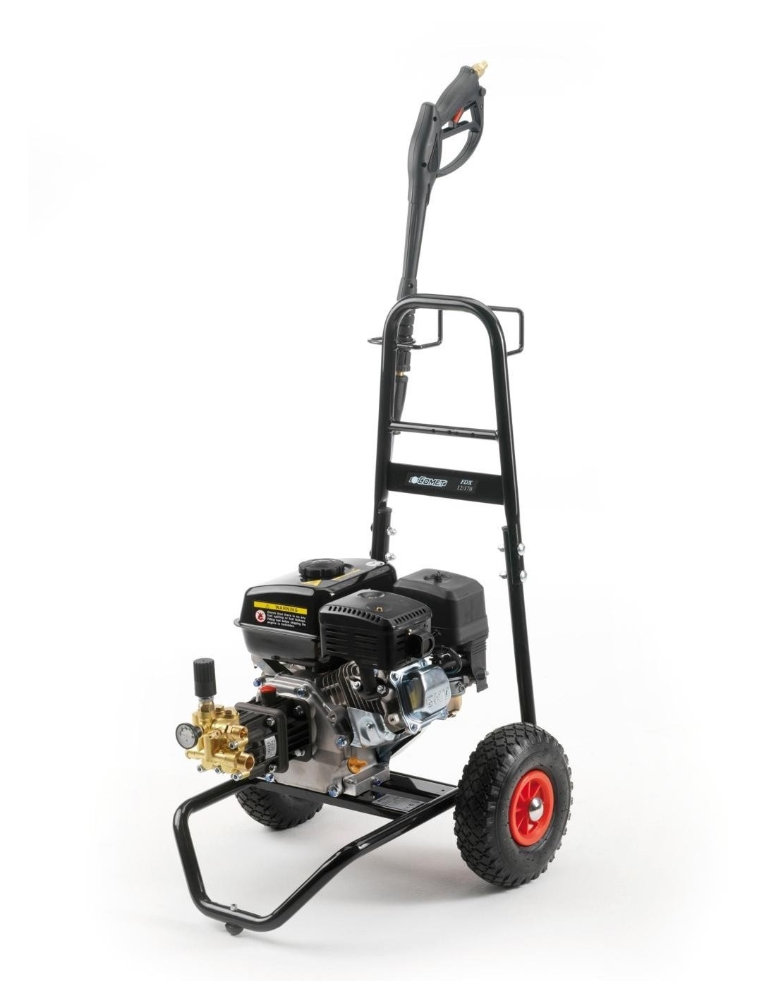 Le nettoyeur haute pression VL FDX12/170L est un nettoyeur haute-pression à eau froide équipé d'un moteur thermique Loncin 5,5 CV. Il vous offre une pression de 170 bar, pour un débit de 720 l/h. Facile à transporter grâce à ses deux roues et sa poignée équipée d'un logement pour le pistolet, la lance et le flexible.Aspiration de détergent à basse pression. Dispositif de sécurité manque d'huile.