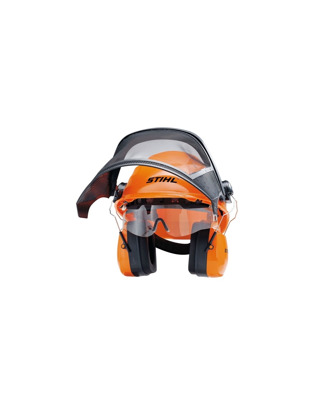 Casques Casque ADVANCE STIHL STIHL 0000-884-9705 Casque avec coque en ABS, design exclusif, coiffe 4 points, visière métallique, filtration de la lumière : 61%. Couleur orange fluo. Réduction sonore : SNR 26. Normes : EN 352-3 (coquille anti bruit) EN 397 (casque) EN 1731 (grille) Voir