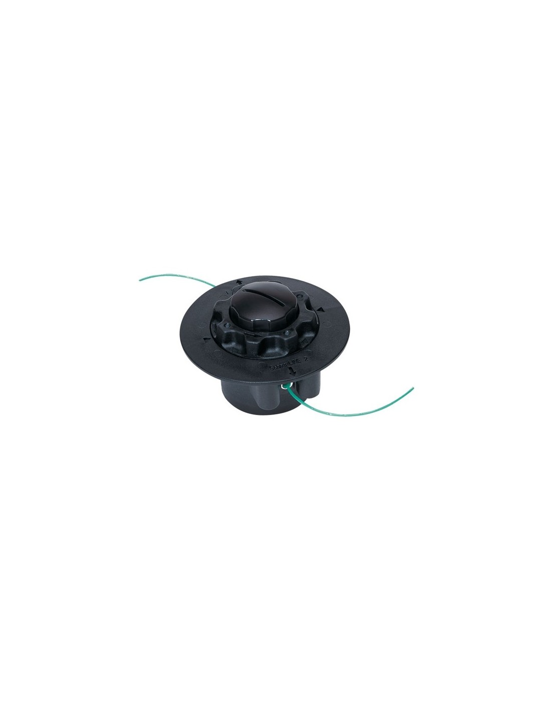 Tête faucheuse semi-automatique à fil, sortie du fil de coupe en frappant sur le sol. Pour faucher les bordures des pelouses, les petites surfaces de gazon et autour d'objets fixes. Sur les têtes avec option confort (C), la recharge se fait très facilement.