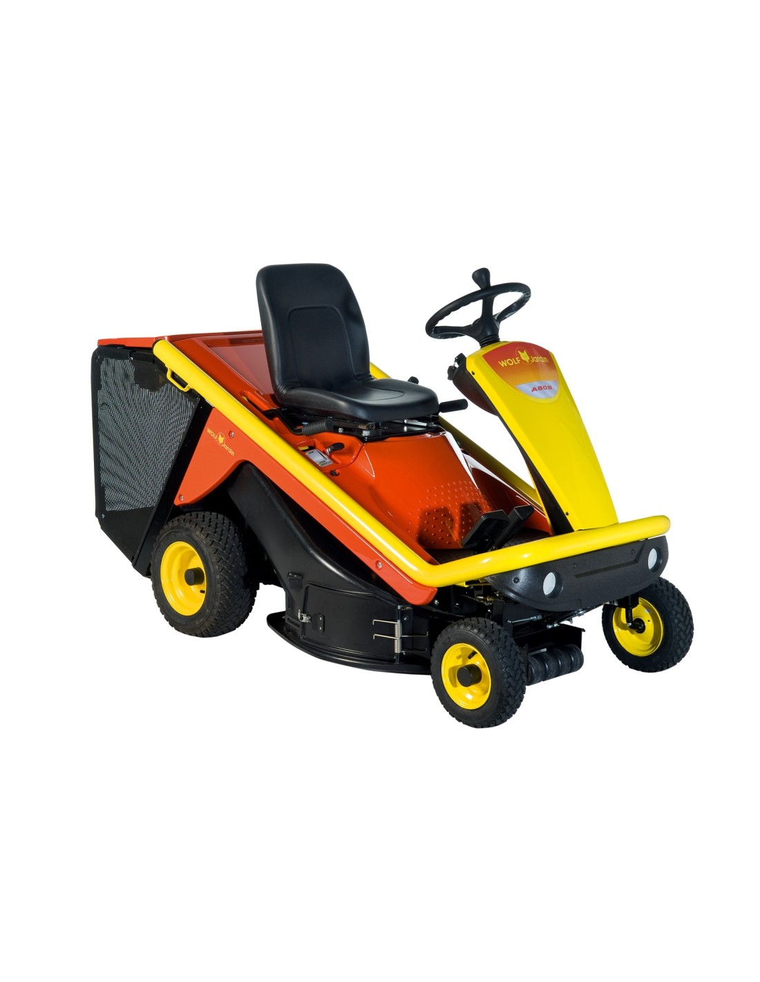 L'autoportée WOLF A80B est une autoportée conçue pour un maximum de confort et d'efficacité. Le moteur situé à l'arrière permet une visibilité parfaite de la zone de tonte et pemet un angle de braquage ultra-court de 60°. C'est une autoportée très compacte : 80cm de largeur de coupe et 85.5cm de largeur hors tout. Moteur, batterie et fusibles accessibles sans outils pour un entretien facile.